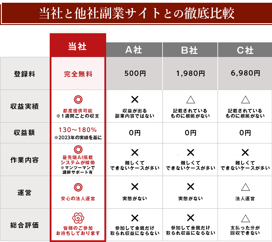 まずは無料で実際に収益が上がることを確認いただいてから提供するサービスへの参加をご検討いただいて構いません。